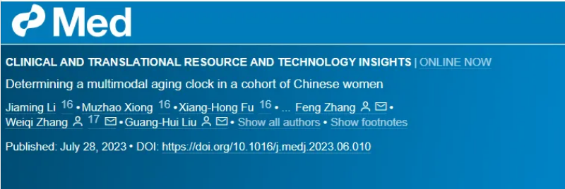 [2]Determining a multimodal aging clock in a cohort of Chinese women. https://doi.org/10.1016/j.medj.2023.06.010