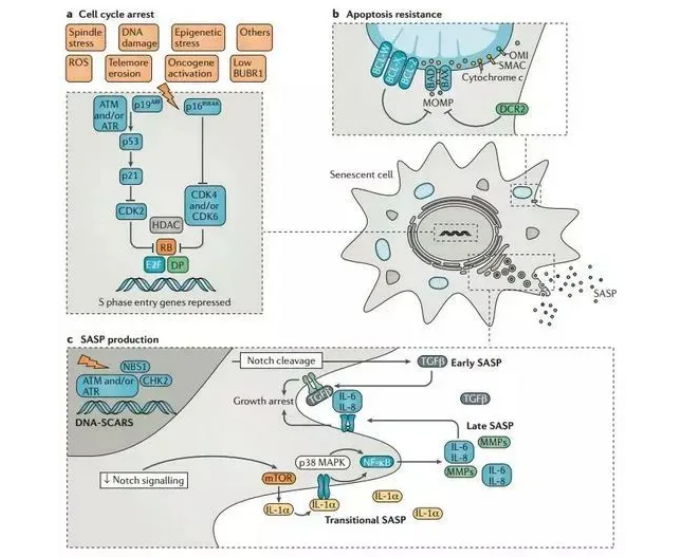 △衰老細(xì)胞的三大特征(圖片來源:《Nature Reviews | Drug Discovery》)