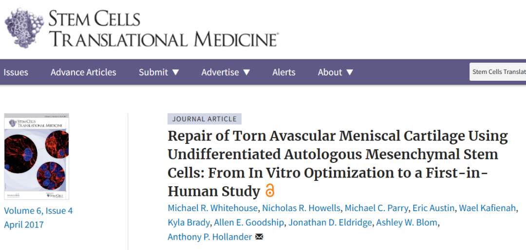 《Stem Cells Transl Med》2017雜志刊登,18人關節腔內通過注入2×10^6(低劑量)、10×10^6(中劑量)、50×10^6(高劑量)的干細胞,隨訪6個月,檢測半月板修復情況。證明干細胞療法修復后疼痛顯著減輕,半月板軟骨質量提高。
