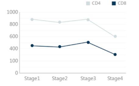 一項針對宮頸癌的TILs治療與腫瘤分期的研究,發現腫瘤末期的TILs中CD4+和CD8+細胞數量顯著降低。