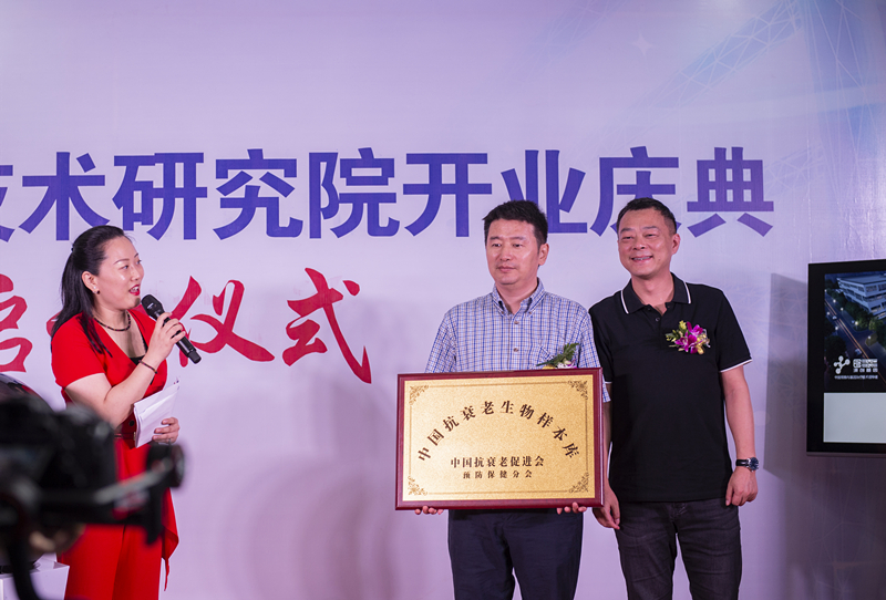 儀式的最后,由中國抗衰老協會預防保健分會會長的代表:香港昊陽集團劉彤副總裁向源創吉因(重慶)細胞應用技術研究院授牌——中國抗衰老生物樣本庫,余遠牧會長向源創吉因(重慶)細胞應用技術研究院授牌。